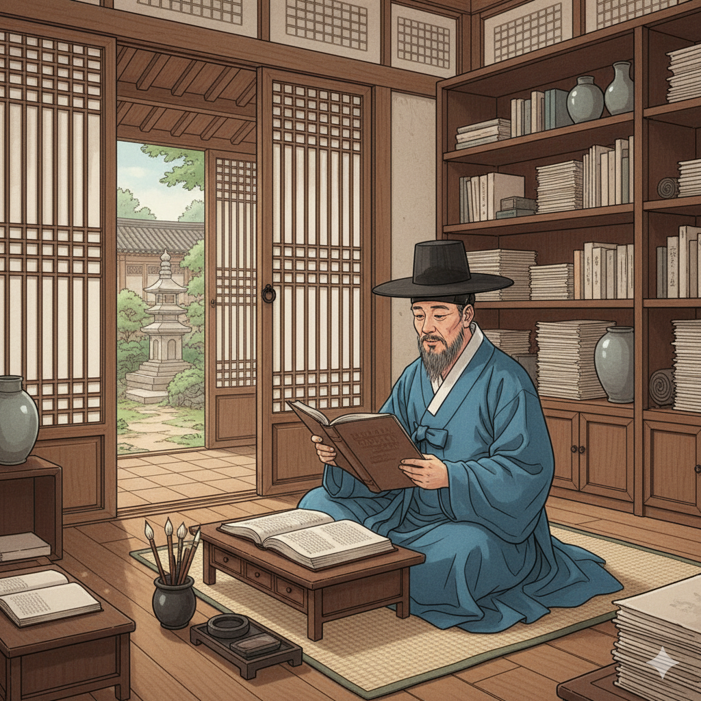 조선시대 양반가의 사랑방을 떠올려보면, 낮은 책상 하나가 놓여 있죠. 경상(經床)이나 서안(書案)이라 불렀던 이 책상은 바닥에 앉아 글을 읽고 쓰기에 적합한 높이였어요. 책은 귀했고, 책궤라는 상자나 책장(冊欌)에 소중히 보관했습니다. 책장을 갖춘다는 건 단순히 수납 공간이 아니라, 학식과 교양을 갖춘 집안이라는 상징이기도 했죠.