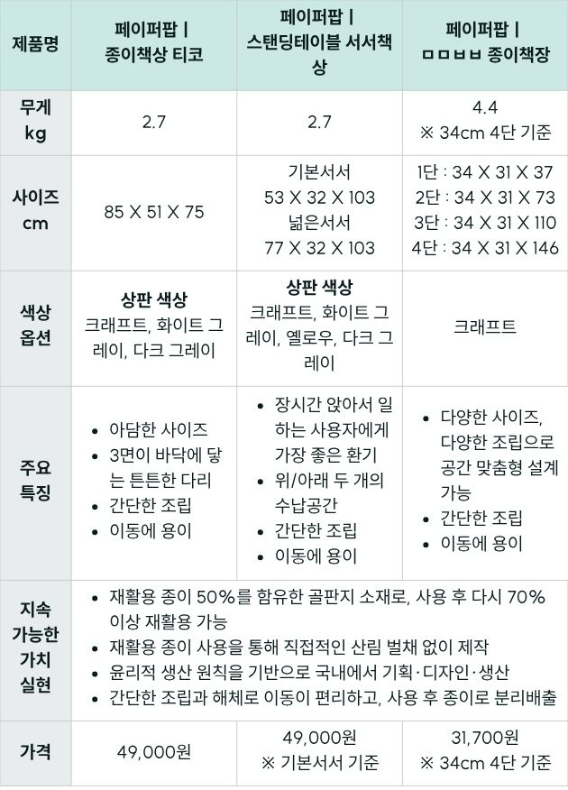 #6-1. 와우띵마켓의 스테이플 큐레이션 - 페이퍼팝ㅣ종이책상 티코 |