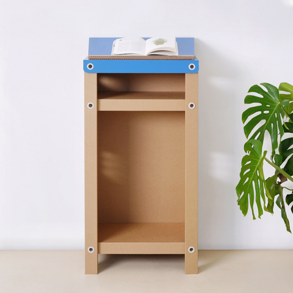 - 주요 소재ㅣ 재활용 종이 50%를 함유한 골판지로 제작되었으며, 사용 후 70% 이상 다시 재활용이 가능합니다. 몸통은 크래프트 칼라 공통이고, 상판은 크래프트, 화이트 그레이, 옐로우, 다크 그레이 색상 중 선택할 수 있어요.