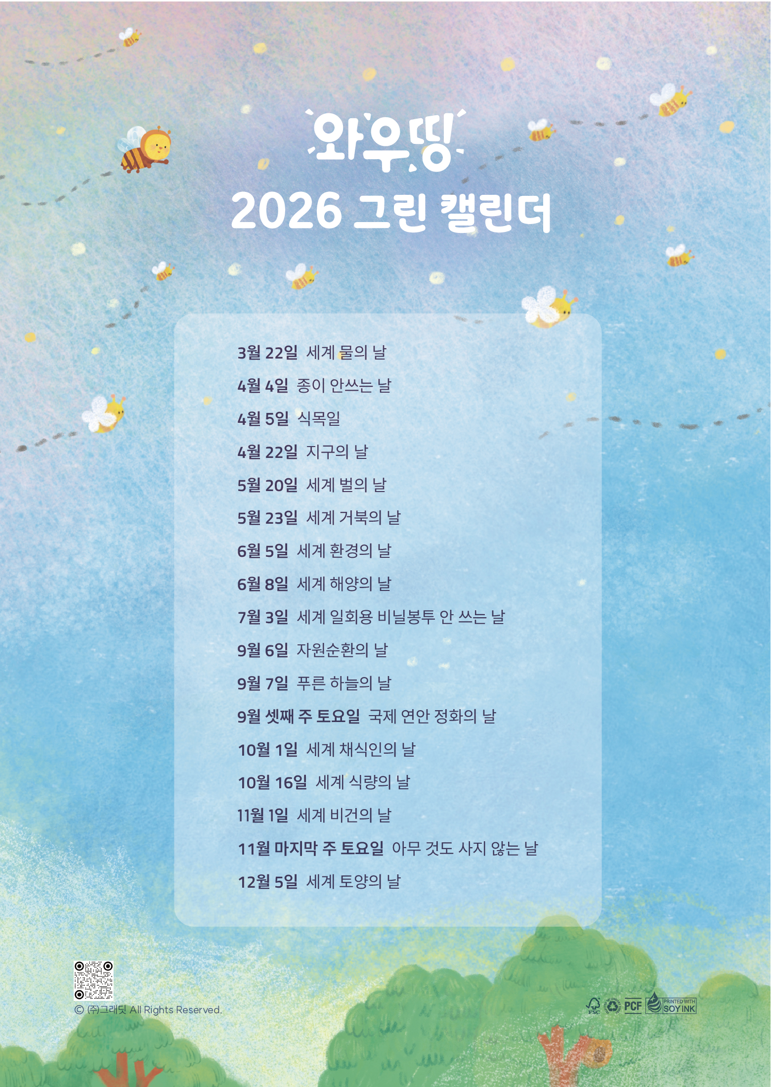 2026년 그린 캘린더를 통해 환경 기념일 요약본을 먼저 소개해 드립니다. 365일 환경 기념일을 챙기다보면, 지속가능한 라이프스타일이 자연스럽게 습관으로 자리 잡을거라 믿어요.