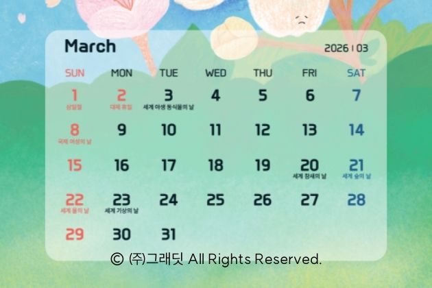 그린 캘린더는 곧 다가올 환경 기념일을 공유하는 섹션입니다. 특별한 날만 환경 활동을 하라는 뜻이 아니고, 각 기념일을 통해 그 소중함을 한 번 더 되새기고, 일상 속 작은 실천의 계기를 만들어 보자는 취지입니다.