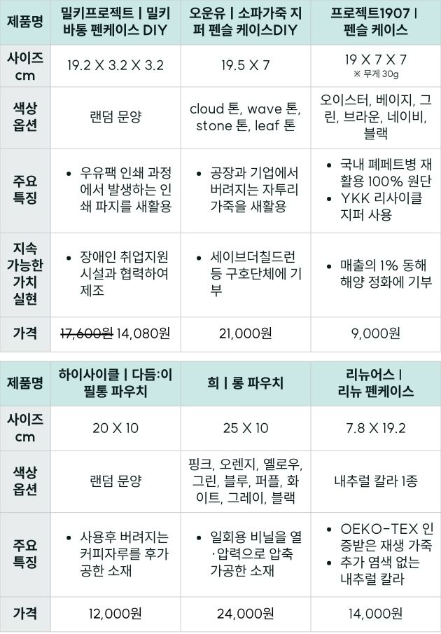 - 와우어 노트ㅣ나만의 유니크한 필통을 찾고 있는 분, 컴팩트한 사이즈의 필통을 선호하는 분, 자원순환과 함께 사회적 가치도 고려하는 분께 추천합니다.